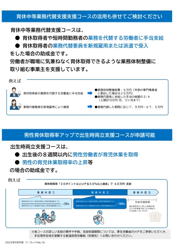 ▶ 2025(令和7)年度 両立支援等助成金のご案内(リーフレット、上部画像)