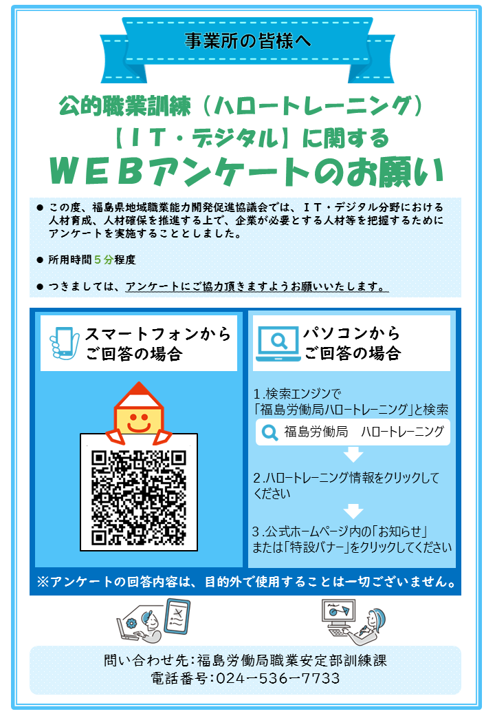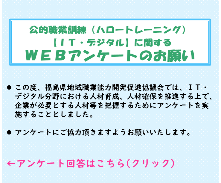 福島県内で実施予定の委託訓練を確認できます。(福島県HP「産業人材育成課」へリンク)