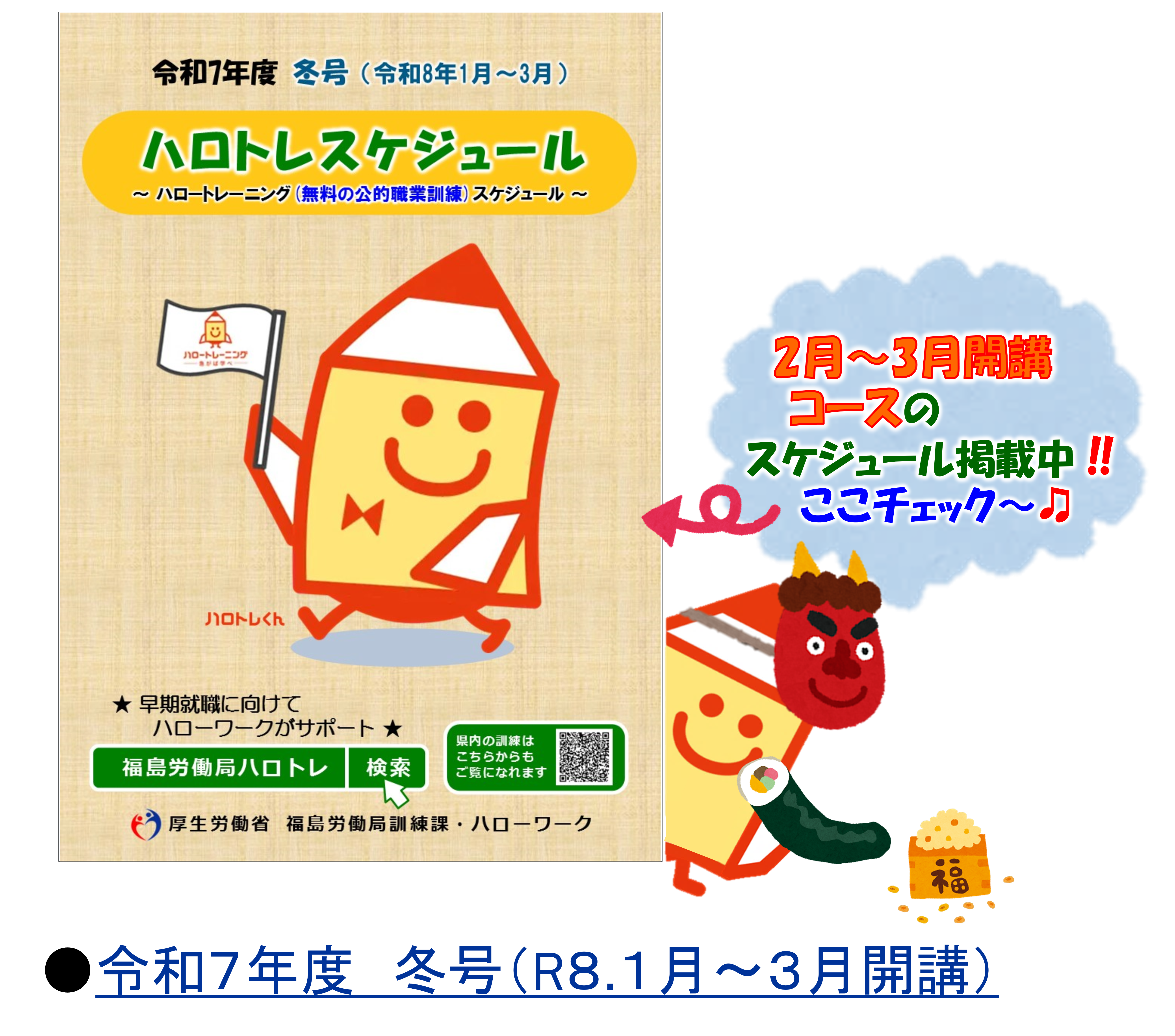 | 2025年10月30日 | 令和8年1・2・3月開講「求職者支援訓練の実施予定コース情報」を掲載しました。 |