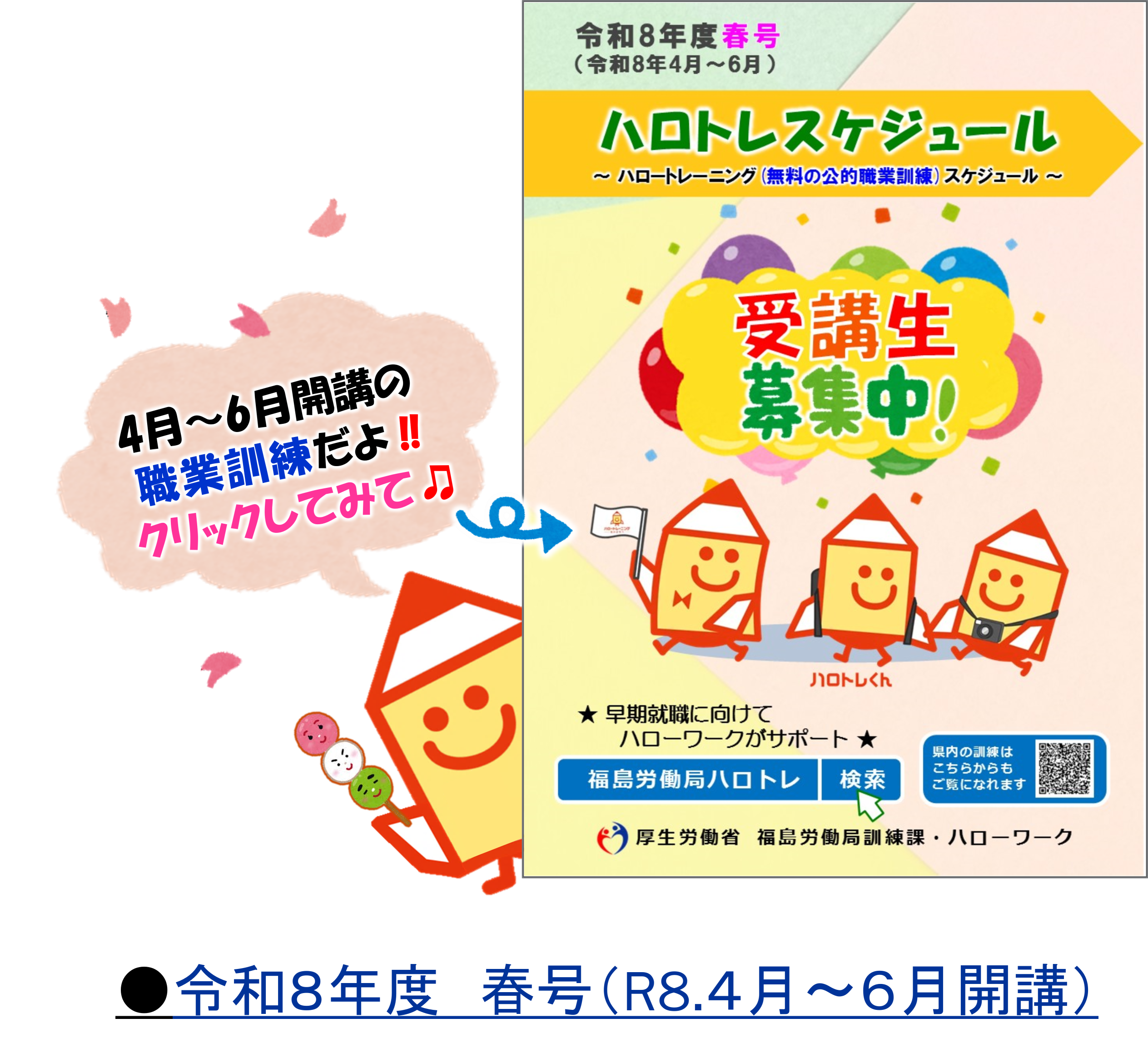 | 2026年 2月18日 | 「ハロートレーニングスケジュール令和8年度 春号」を掲載しました。 |