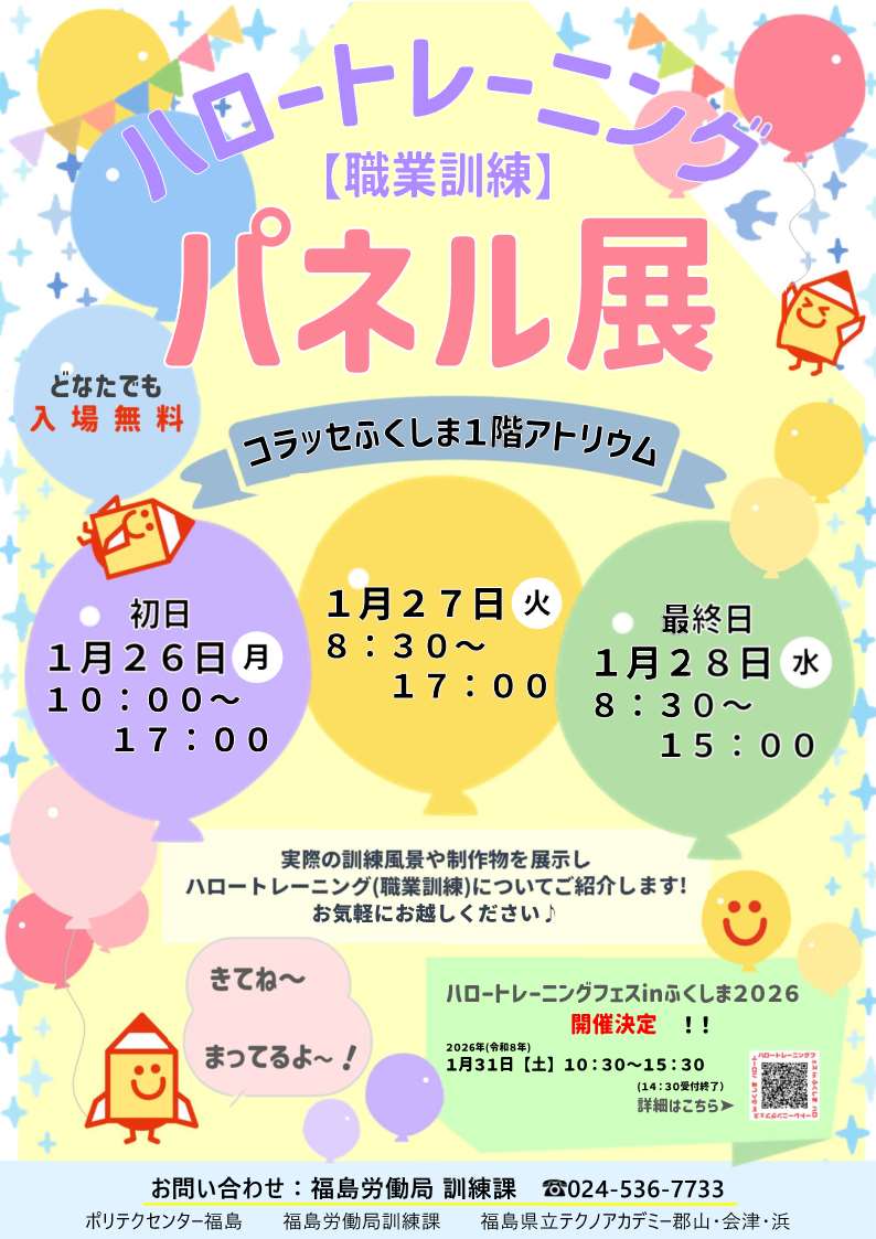 「ハロートレーニング(職業訓練)パネル展」 も開催するよ!