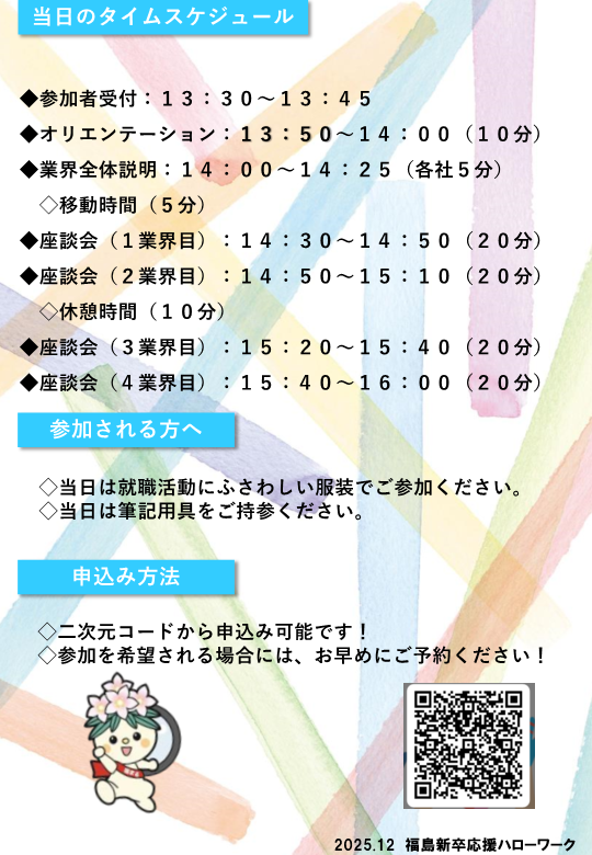事務局:福島新卒応援ハローワーク(福島市曽根田町1-18 MAXふくしま5F)