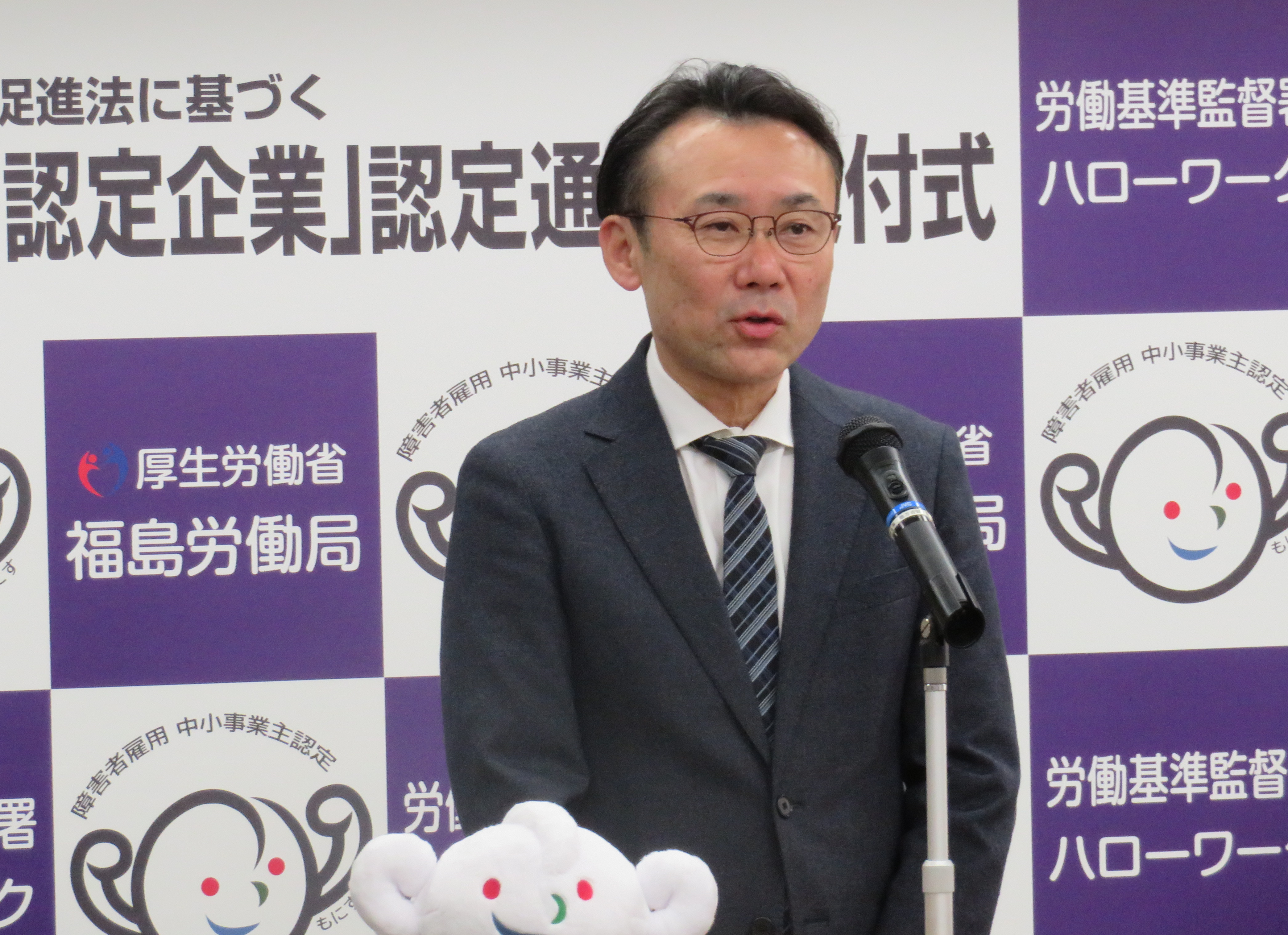 令和7年12月23日(火)福島労働局では、「障害者の雇用の促進等に関する法律(障害者雇用促進法)」に基づき、障害者の雇用管理状況が優良で、一定の基準を満たした下記の企業を「もにす認定企業」と認定し、労働局内において認定通知書の交付を行いました。
