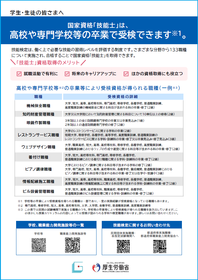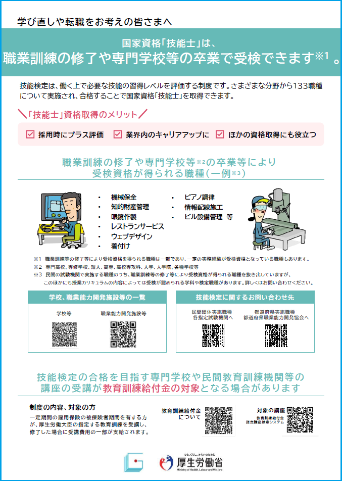 国家資格「技能士」について、詳しくは、下記リーフレットをご覧ください。