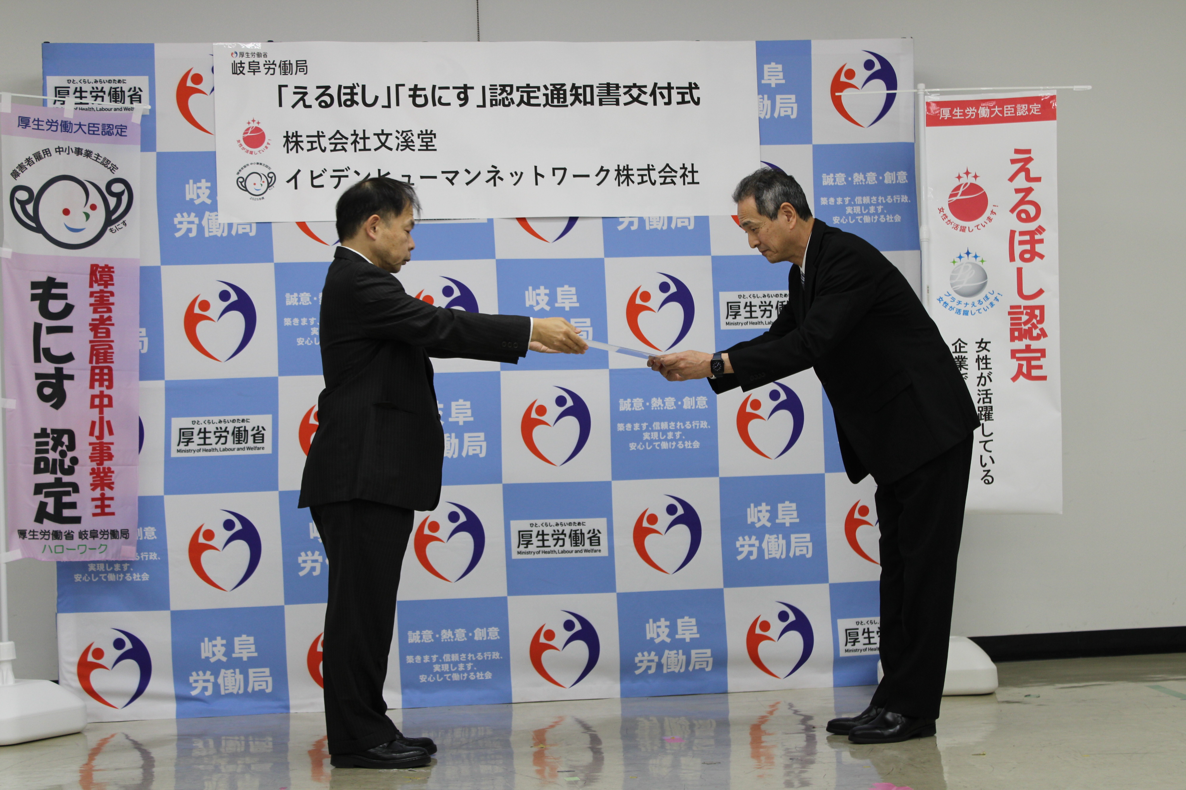 認定マーク「もにす」| 〇認定申請書を参照してください。 「もにす」認定事業主を募集します。 ◆◆◆ 岐阜労働局とハローワークでは「もにす」認定事業主を積極的にPRしています◆◆◆ 認 定 通 知 書 交 付 式