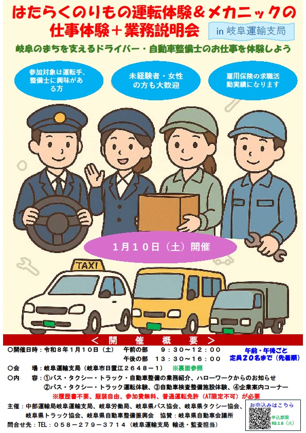 イベントの詳細は、ハローワーク岐阜「人材確保・就職支援コーナー」へお問い合わせください。