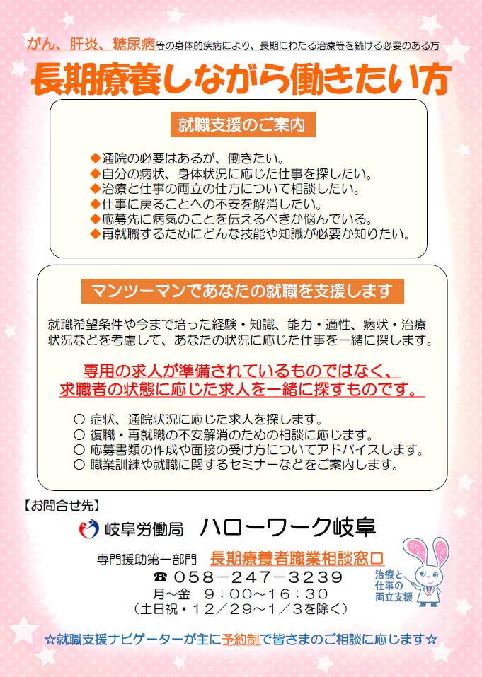 ハローワーク岐阜 長期療養者職業相談窓口のご案内