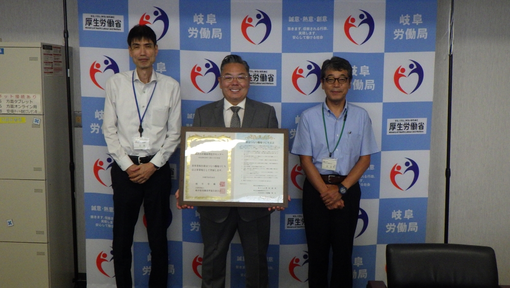 令和7年8月27日に、岐阜労働基準監督署において新はつらつ職場づくり宣言の登録証の贈呈を行いました。