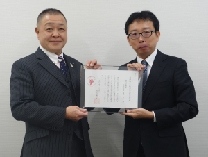 - 株式会社横建を「くるみん」に認定!企業を訪問して認定通知書を交付しました。