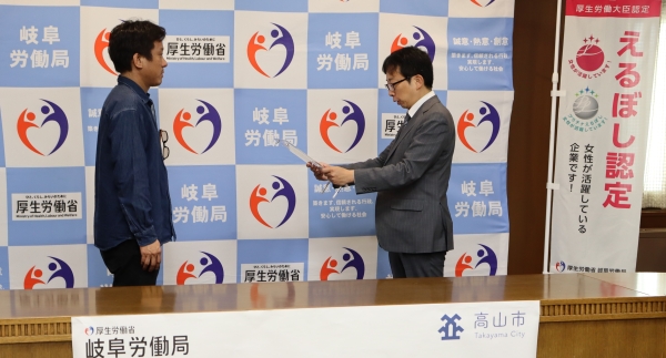 岐阜労働局(局長 原田浩一)は女性活躍推進法に基づき、高山市の株式会社つづくを認定(えるぼし認定第3段階)し、令和8年3月11日に高山市役所において認定通知書を交付しました。