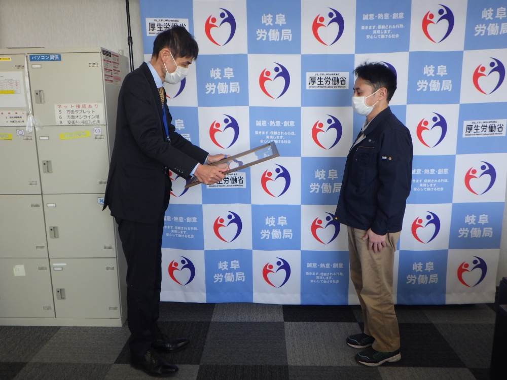 令和8年3月12日に、岐阜労働基準監督署において新はつらつ職場づくり宣言の登録証の贈呈を行いました。