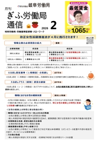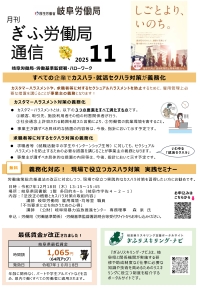 岐阜労働局では、労働行政に関する各種情報を皆さまにお届けするために、情報紙「ぎふ労働局通信」を毎月発行しています。 最新号はこちら。 バックナンバーは、下記に掲載しています。