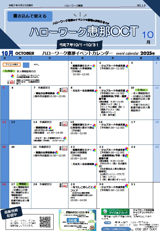 - 【ハローワーク恵那】ハローワーク恵那 イベント・情報のお知らせ ◆10月◆
