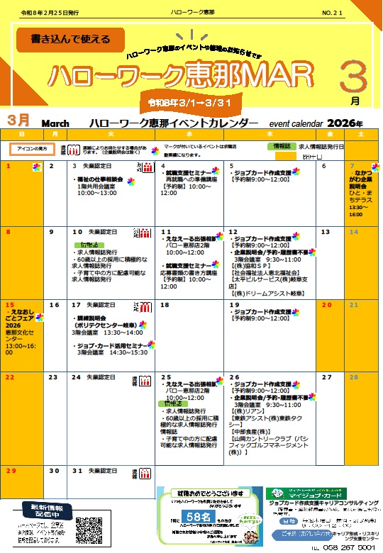 - 【ハローワーク恵那】ハローワーク恵那 イベント・情報のお知らせ ◆3月◆