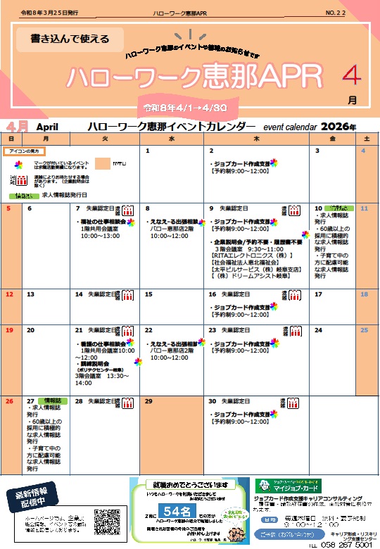 - 【ハローワーク恵那】ハローワーク恵那 イベント・情報のお知らせ ◆4月◆