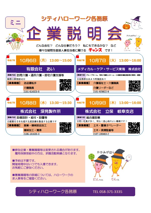 【ハローワーク岐阜】ミニ企業説明会のご案内(各務原)