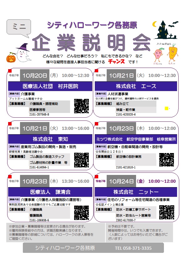 【ハローワーク岐阜】ミニ企業説明会のご案内(各務原)