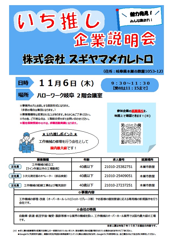 - 【ハローワーク岐阜】11月6日 いち推し企業説明会のご案内