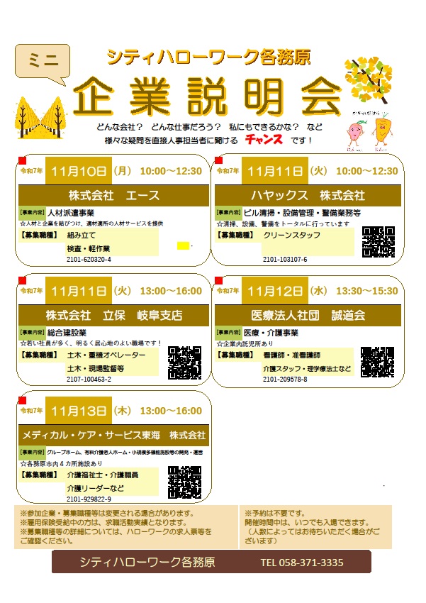 【ハローワーク岐阜】ミニ企業説明会のご案内(各務原)