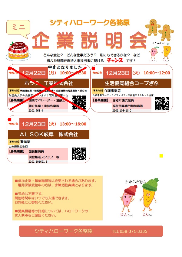 - 【ハローワーク岐阜】ミニ企業説明会のご案内(各務原)