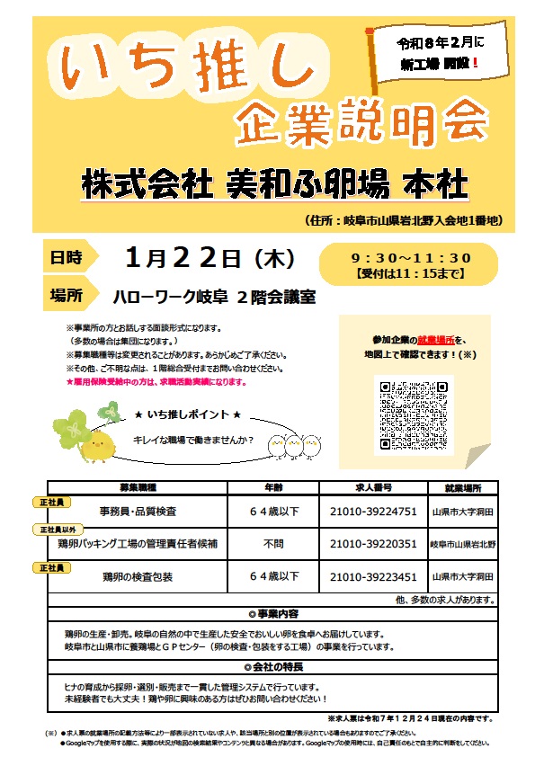 - 【ハローワーク岐阜】1月22日 いち推し企業説明会のご案内