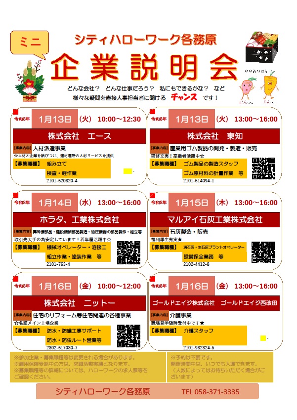 - 【ハローワーク岐阜】ミニ企業説明会のご案内(各務原)