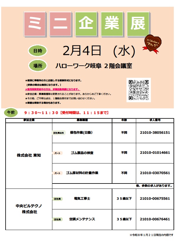 - 【ハローワーク岐阜】2月4日 ミニ企業展のご案内