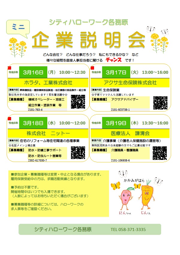 【ハローワーク岐阜】ミニ企業説明会のご案内(各務原)