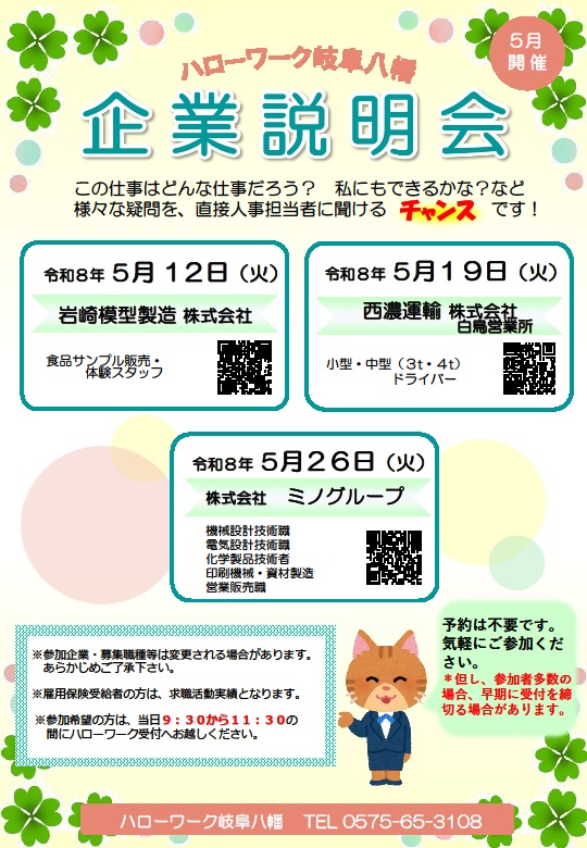 - 【ハローワーク岐阜八幡】企業説明会のご案内 ◆5月◆