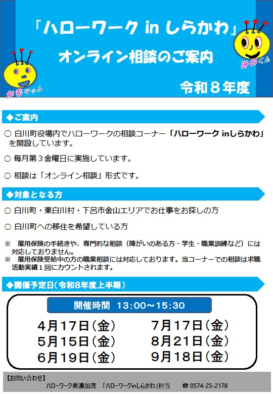 - 【ハローワーク美濃加茂】ハローワークinしらかわ オンライン相談のご案内