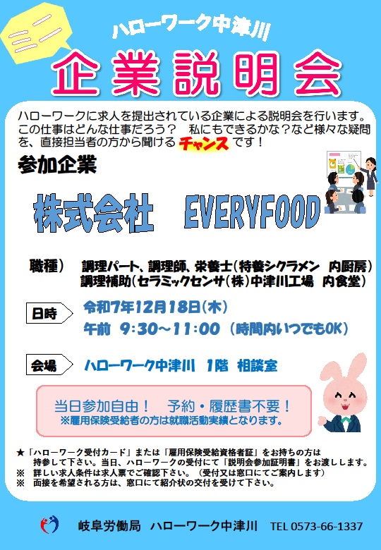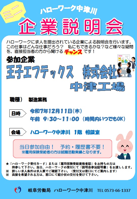 - 【ハローワーク中津川】ミニ企業説明会 ◆12月◆ のご案内