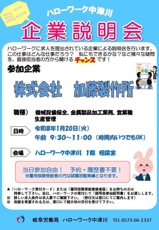 【ハローワーク中津川】1月20日 ミニ企業説明会のご案内
