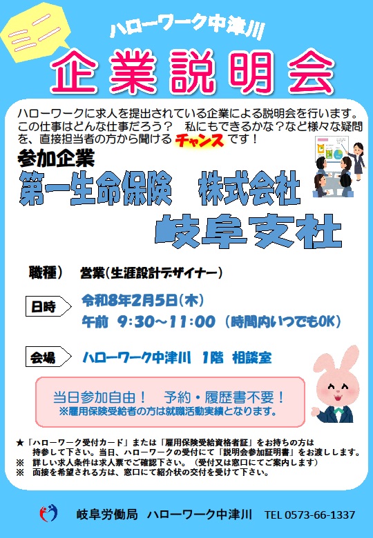 【ハローワーク中津川】2月5日 ミニ企業説明会のご案内