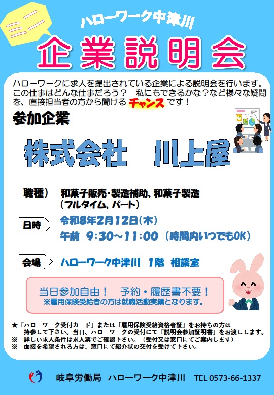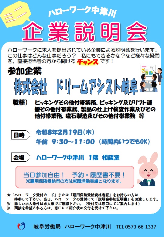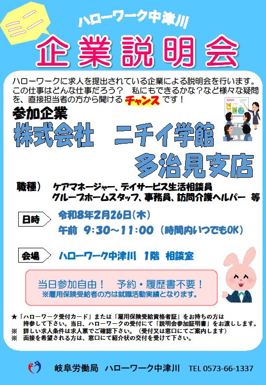 - 【ハローワーク中津川】ミニ企業説明会 ◆2月◆ のご案内