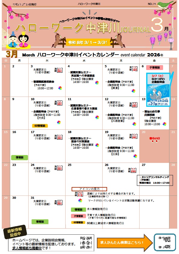 【ハローワーク中津川】イベントカレンダー ◆3月◆