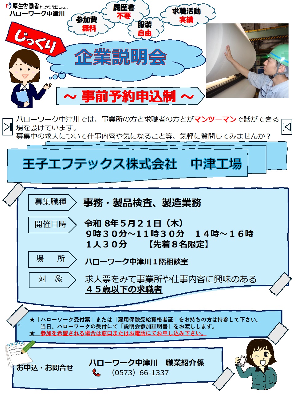 - 【ハローワーク中津川】5月21日 じっくり企業説明会のご案内
