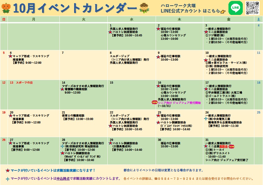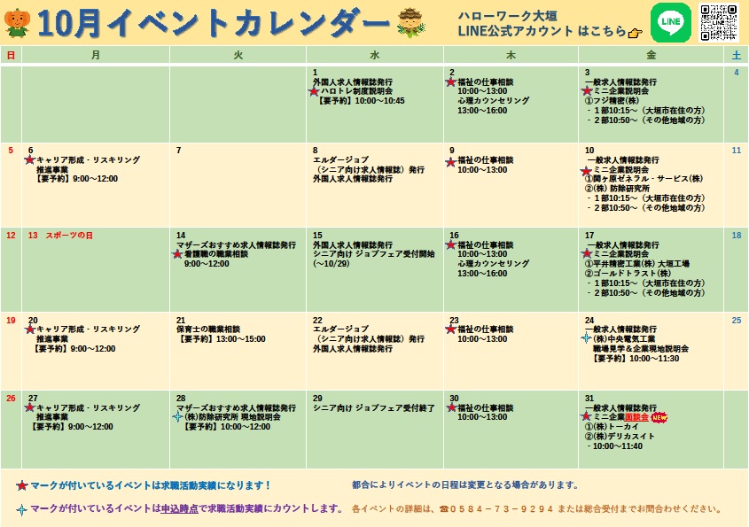 【ハローワーク大垣】イベントカレンダー ◆10月◆