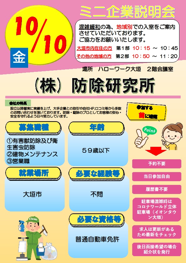 - 【ハローワーク大垣】10月10日 ミニ企業説明会のご案内