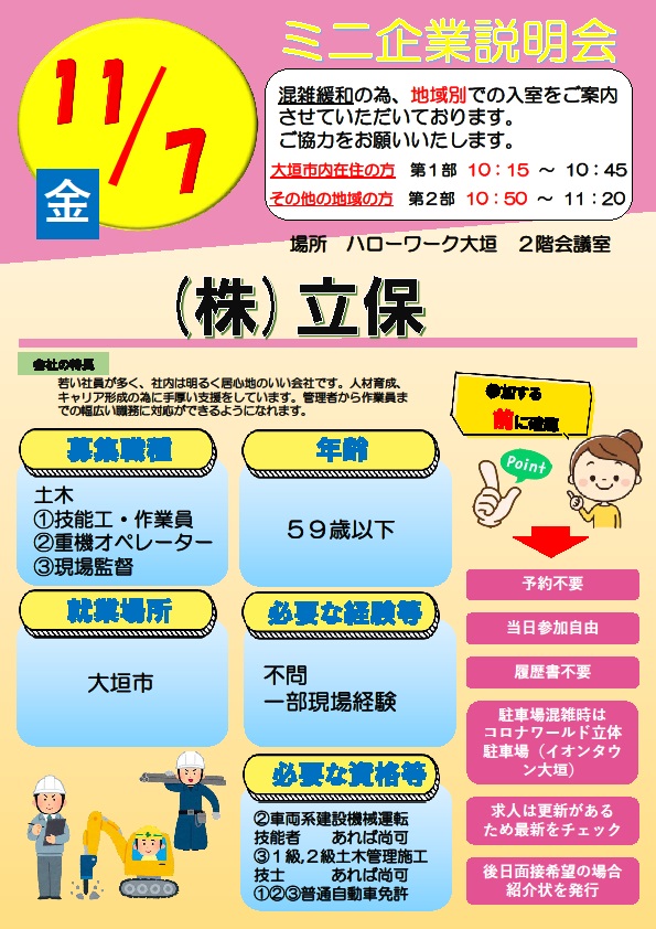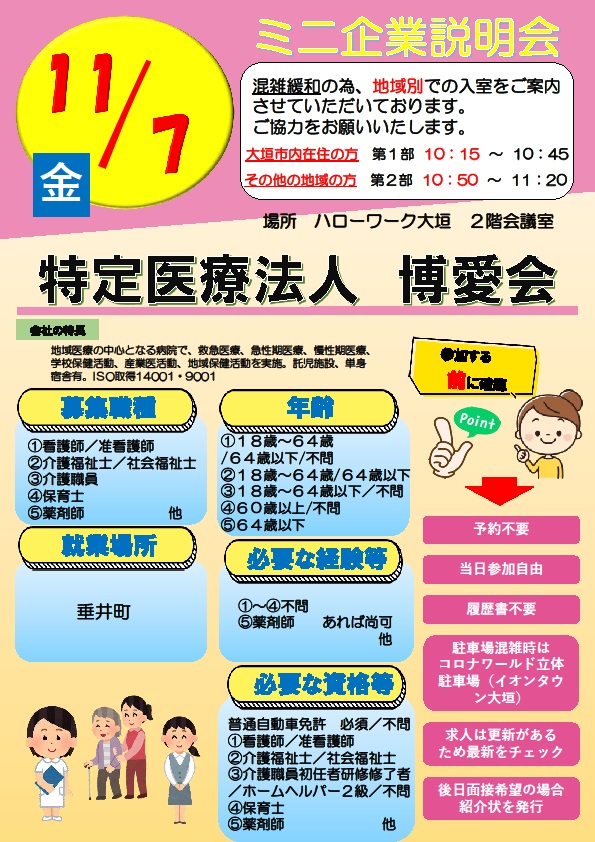 - 【ハローワーク大垣】11月7日 ミニ企業説明会のご案内