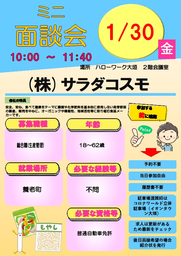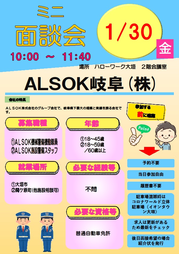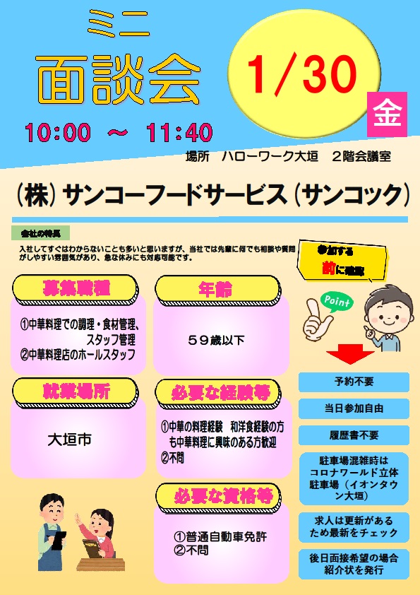 - 【ハローワーク大垣】1月30日 ミニ面談会のご案内
