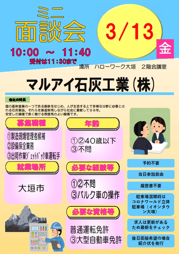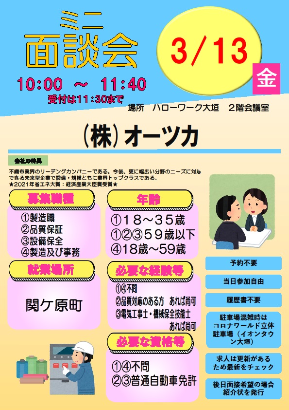 【ハローワーク大垣】3月13日 ミニ面談会のご案内