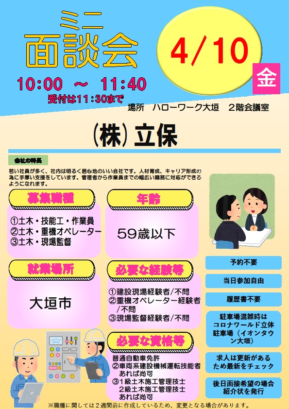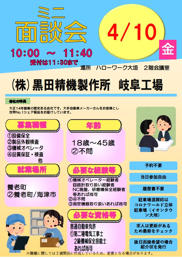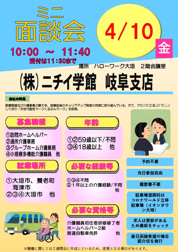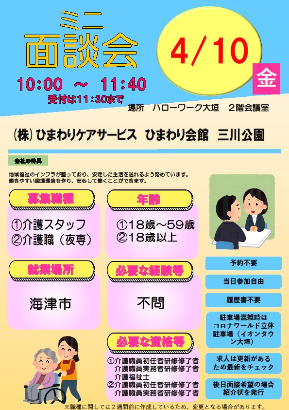 - 【ハローワーク大垣】4月10日 ミニ面談会のご案内