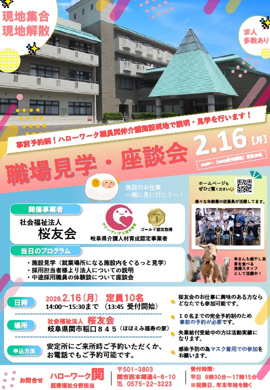 【ハローワーク関】2月16日 職場見学・座談会のご案内