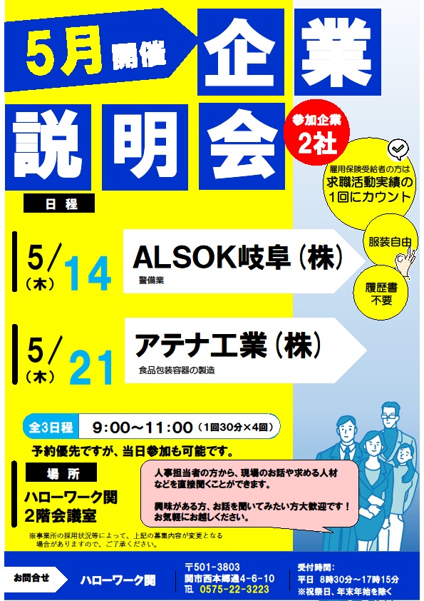 - 【ハローワーク関】企業説明会のご案内 ◆5月◆