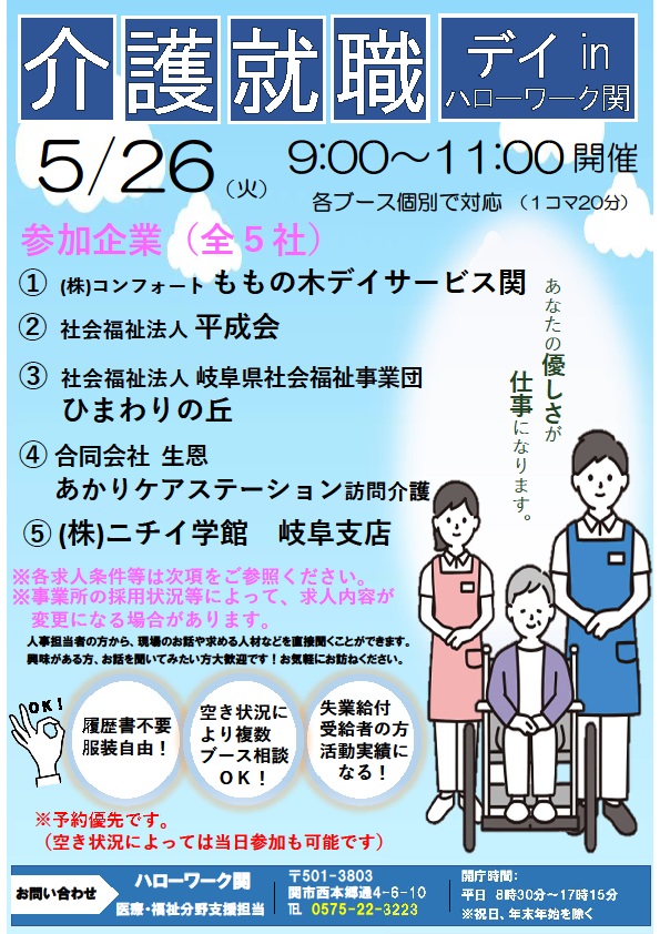 【ハローワーク関】介護就職デイ in 関 5月のご案内