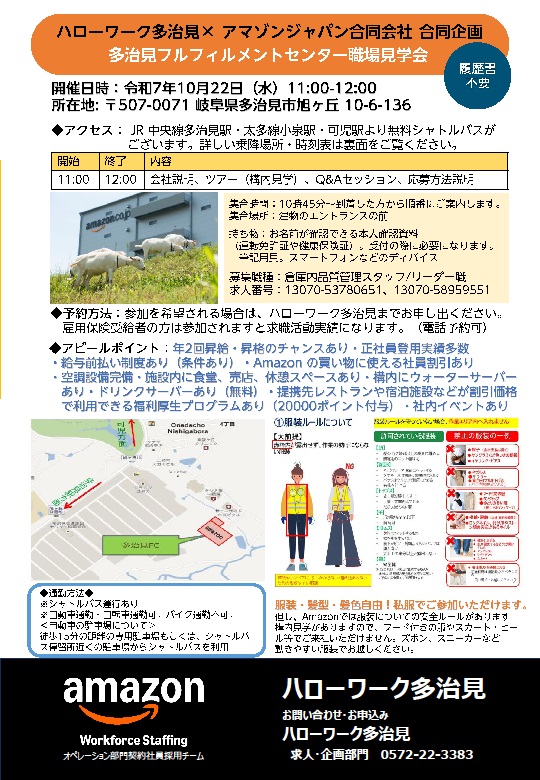 - 【ハローワーク多治見】10月22日 職場見学会のご案内