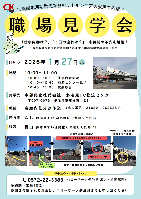 - 【ハローワーク多治見】1月27日 職場見学会のご案内