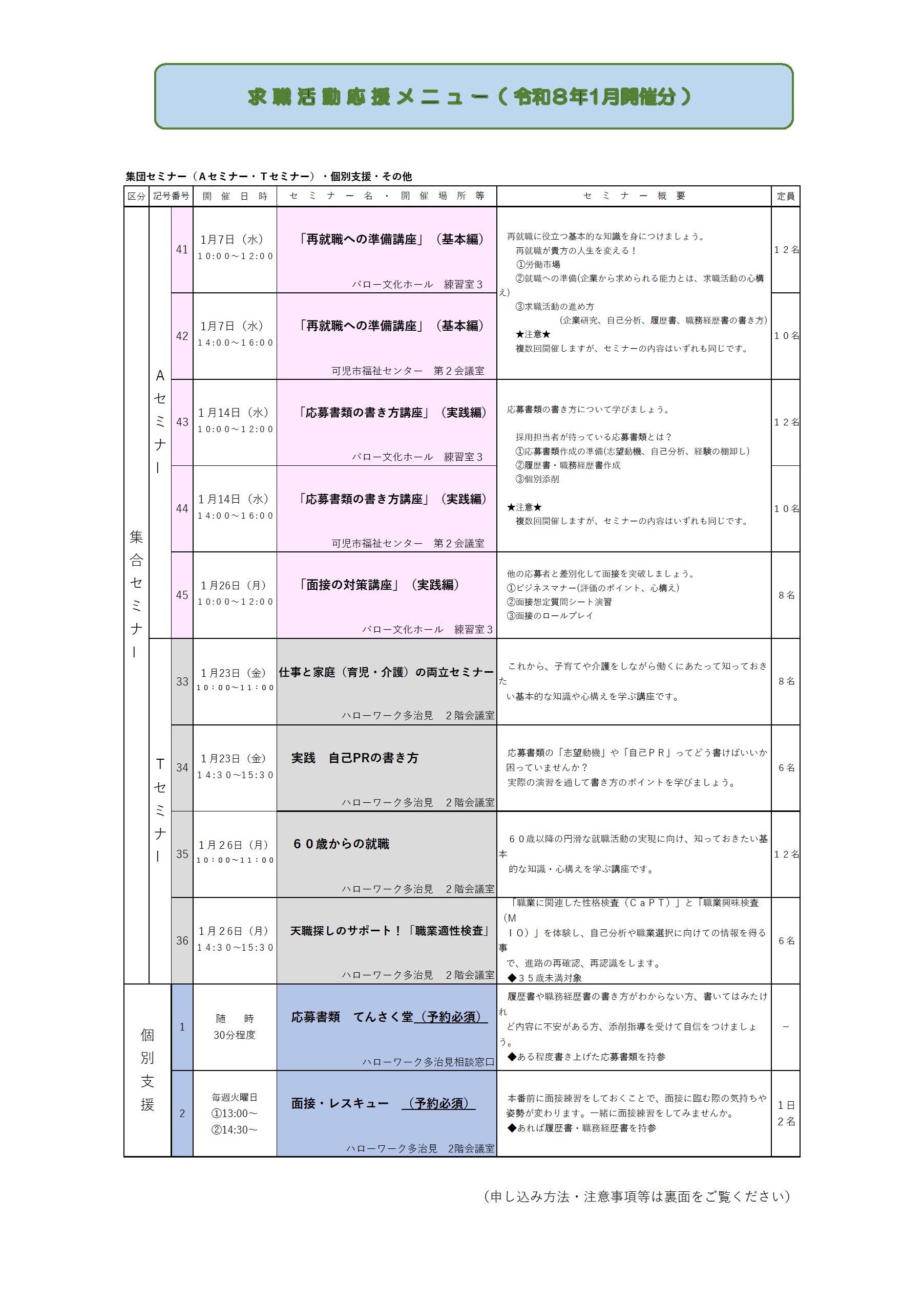 - 【ハローワーク多治見】求職活動応援メニューのご案内 ◆1月◆
