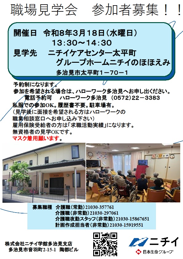 - 【ハローワーク多治見】3月18日 職場見学会のご案内
