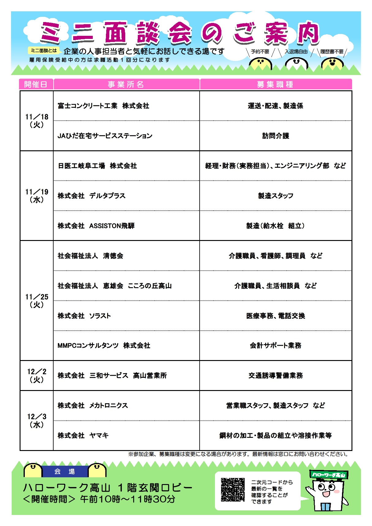 - 【ハローワーク高山】ミニ面談会のご案内 ◆11月~12月◆